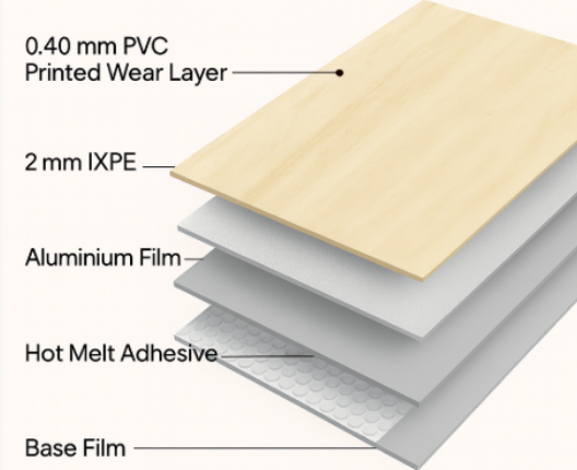 2. 2 mm IXPE foam layer effectively conceals wall imperfections for worry-free installation.