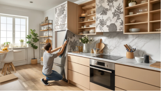 2. Kitchen and Bathroom Updates: Use contact paper to revamp countertops, backsplashes, or even appliances. It’s a quick and easy way to modernize these spaces without the cost of a full renovation.