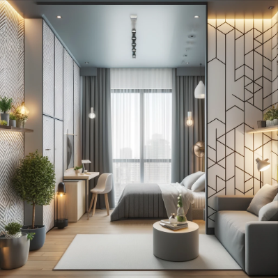 Let's create an image showcasing how adhesive wallpaper effectively utilizes and beautifies a small urban apartment space.