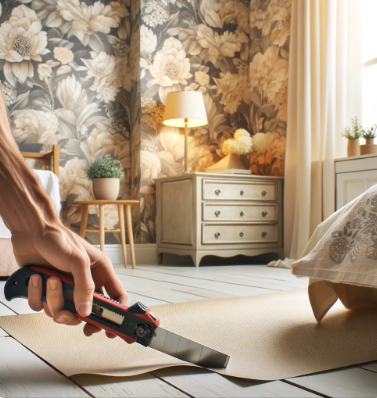 Once the wallpaper is applied, use a utility knife to trim any excess at the top, bottom, and edges. Be sure to cut carefully for a clean, professional finish. Repeat the process with additional strips, making sure to match any patterns for a seamless look.